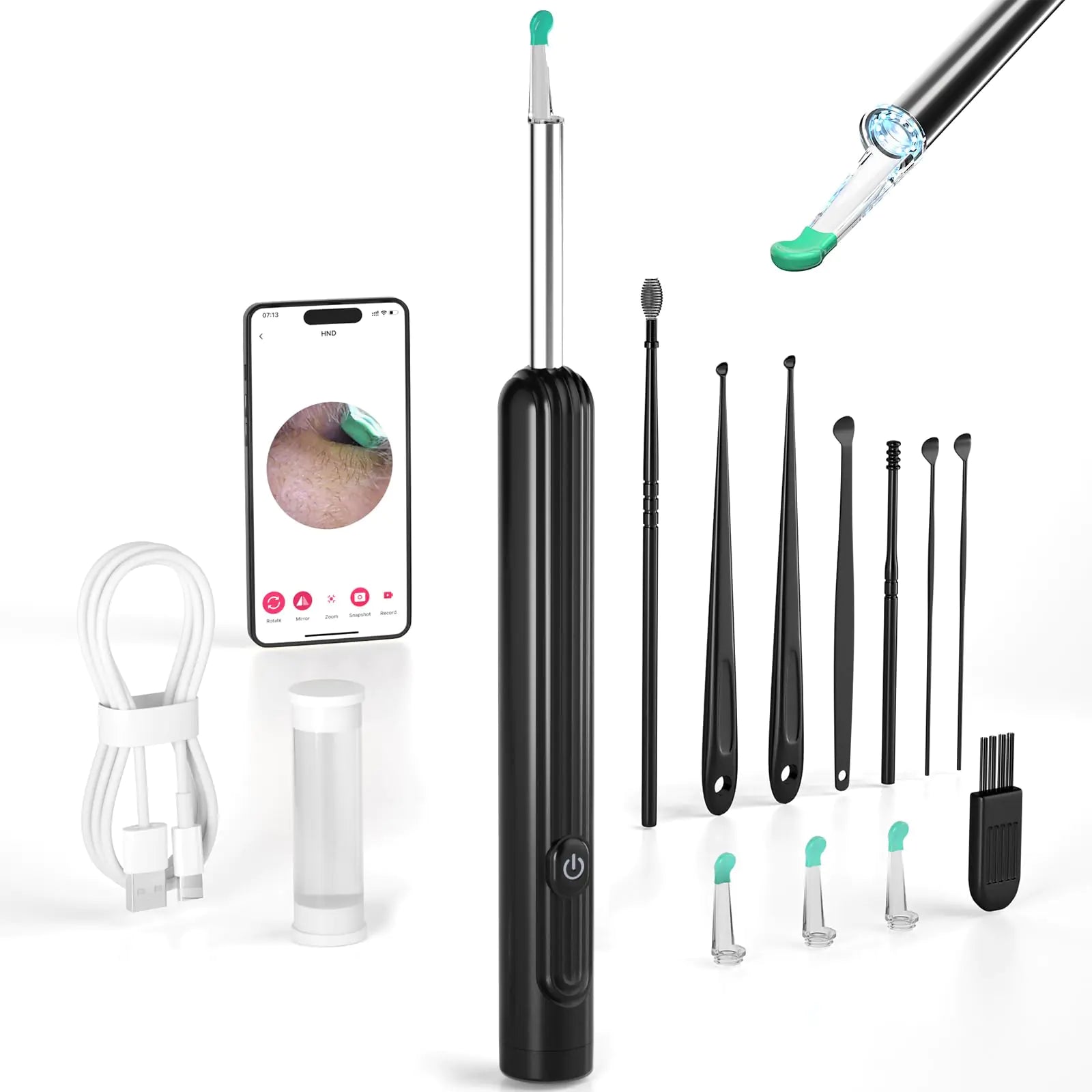 Ear Wax Removal Tool Camera Ear Cleaner with Camera Ear Wax Removal Kit with 1296P Camera Ear Cleaning Kit Ear Camera Otoscope with Light for iPhone iPad Android Phones - Black
